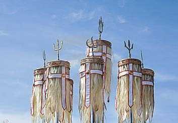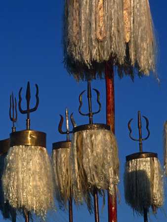 Таким был символ власти у народа хунну. Вероятно, Чингисхан считал монголов преемниками народа хунну. В его империи символом верховной власти также был трезубец. Фото с сайта: http://www.allposters.com.tr/-sp/Khentii-Province-Tridents-Hoisted-to-Celebrate-the-Name-of-Genghis-Khan-Mongolia-Posterler_i6219920_.htm |