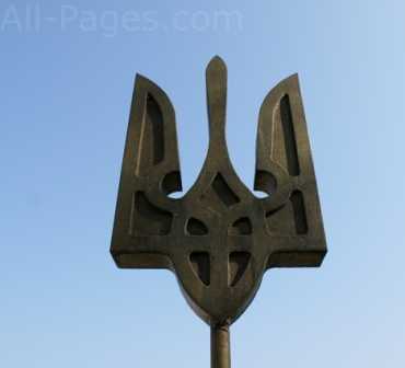 Герб с трезубецем — сегодня символ Украины. Украина унаследовала его якобы у князя Владимира Ясно Солнышко, который крестил народ Киевской Руси в христианскую веру. Фото с сайта: http://all-pages.com/city_photo/6/15/58/269/2.html |