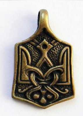 плита-стела с выдолбленным знаком в виде трезубца. Таким образом, знак–тамга трезубца проистекает из очень древней традиции, соединяющей в один узел многие древние родовые кланы. Но родство кланов этим знаком, конечно, не ограничивается. У них имеютя и другие родственные атрибуты. Например, присмотревшись к изображению на златнике князя Владимира, мы увидим помимо трезубца еще один «глобальный» знак–символ в виде трех кругов. Или символ колеса, также связывающий воедино древнейшие традиции разных народов и эпох. Список цитированных источников: 1. Рыбаков Б. А. Знаки собственности в княжеском хозяйстве