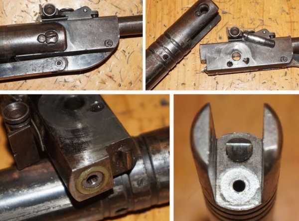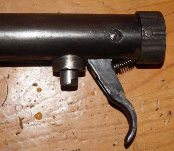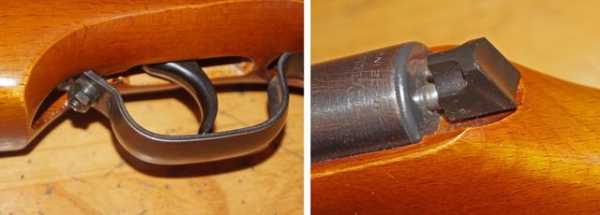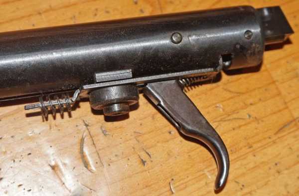 …Предохранитель-рамка сдвигается ,блокирует сп.крючек, выталкивает кнопку на затыльнике цилиндра. Деталей на предохранителе раза в четыре больше, чем на самом спуск. механизме(если учитывать и винт регулировки)…