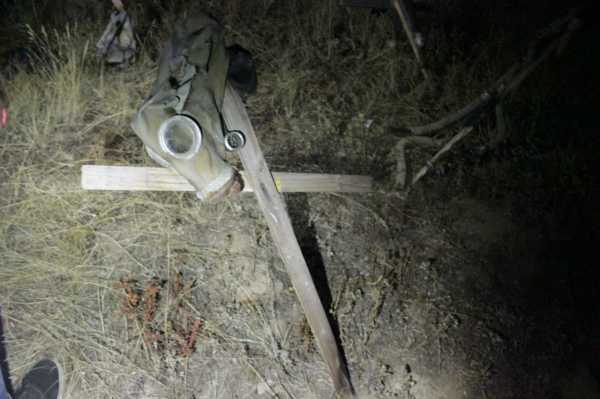 Целое кладбище таких крестов с противогазами встречает нас на поле, среди ракетных шахт.