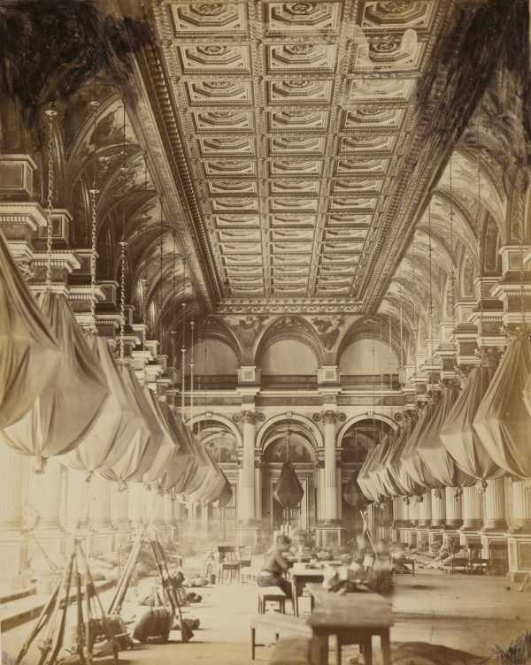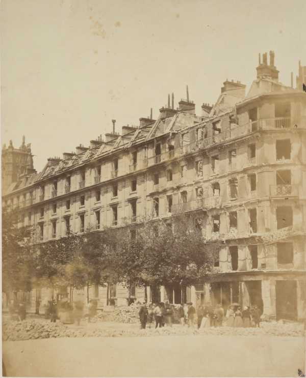 Но версальцам предстояло ещё завоевать улицы Парижа, заграждённые сильными баррикадами, вооружёнными артиллерией. Началась восьмидневная уличная резня, беспощадная с обеих сторон, ужасающая по своим подробностям. Федералисты получили приказ поджигать или взрывать всякий дом, который они вынуждены были оставить. Всецело пожары, омрачившие последнюю борьбу, не могут быть объяснены соображениями защиты; наряду с последними несомненно действовала и жажда мести. Если огонь уничтожил лишь несколько улиц и ряд общественных зданий, то исключительно благодаря быстрому натиску версальцев, которые занимали одну часть города за другой. По-видимому, не все поджоги должны быть поставлены в вину федералистам. Адмирал Сессэrufr, которого нельзя заподозрить в приверженности к коммуне, призванный свидетелем в следственную комиссию, прямо объявил, что пожар Тюильри, ратуши, министерства финансов и счётной палаты — дело бонапартистов. В этих зданиях хранилась масса всякого рода документов и отчётов, относившихся к периоду до империи.