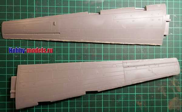 Далее крылья были склеены и зашпаклеваны самодельной шпаклевкой на основе дихлорэтана и полистироловой стружки.