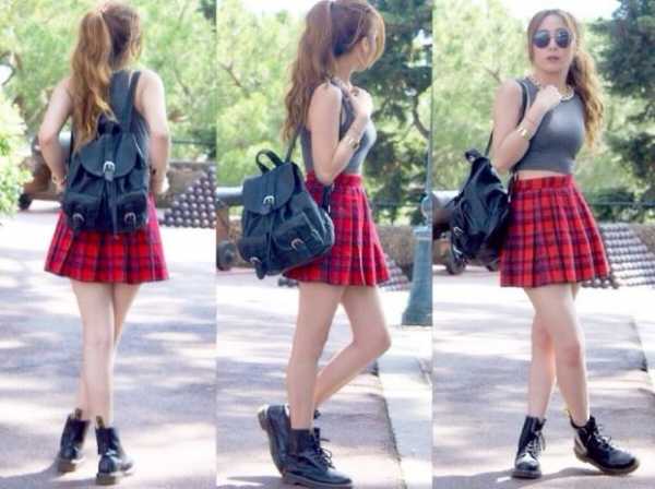- Юбка-солнце. Она не должна быть украшена бантами, стразами или воланами. Отдавайте предпочтение моделям с накладными карманами и заклёпками;