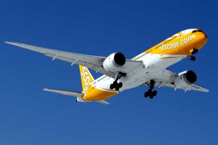 Boeing 787-9, длина фюзеляжа 62,81 метра; на снимке самолёт авиакомпании Scoot, низкобюджетного подразделения Singapore Airlines