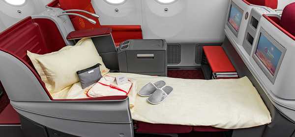 Бизнес-класс включает в себя 42 кресла в конфигурации 2:3:2, он разделен на две секции: первая на 14 мест, а вторая на 28. Все сиденья раскладываются в кровать длиной 183 см, есть возможность регулировки подголовника и поддержки поясницы. Положение Z обеспечивает мощную поддержку коленей и спины, так что вы можете полностью расслабиться. Возле каждого кресла есть блок питания для электронных устройств. Адаптер питания рекомендуется взять с собой, так как их не всегда можно приобрести на борту. Все места достаточно удобные, за исключением 7BDFJ и 10 BDFJ — они расположены вблизи туалетов и галерей, поэтому будет доноситься посторонний шум и яркий свет от включенного дополнительного освещения даже ночью.