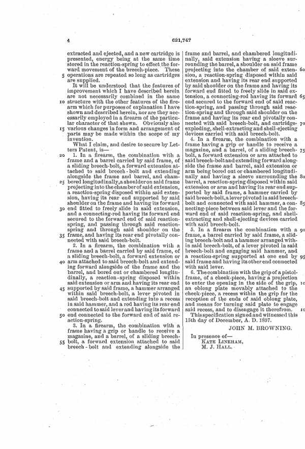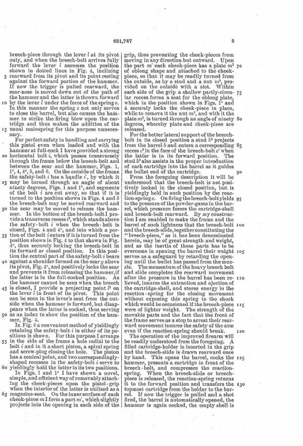 В 1897 году он получил несколько американских патентов на конструкции пистолетов: