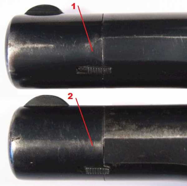 Через окно для извлечения гильз в затворе видна маркировка, нанесенная на поверхности патронника ствола. Обычно она представляет собой указание калибра оружия и бельгийские приемные клейма.