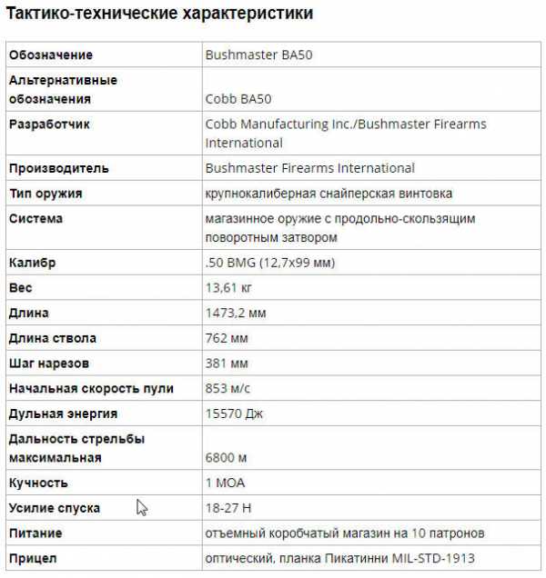 Bushmaster BA50 — одна из редких винтовок крупного калибра, использующих конструктивную концепцию AR-15/M16.