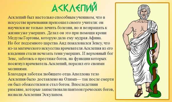 Символом Асклепия была змея. Есть легенда о змее, которая принесла траву жизни. Считается, что этот символ – змея, свернувшаяся кольцами – появился благодаря той истории.