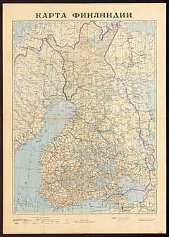 Карта с новой линией государственной границы между СССР и Финляндией, являющаяся приложением к Договору о взаимопомощи и дружбе между Советским Союзом и Финлядской Демократической Республикой от 2 декабря 1939 года[20].Первый раз Финляндию представлял посланник, государственный советник Ю. К. Паасикиви, посол Финляндии в Москве Аарно Коскинен, чиновник министерства иностранных дел Йохан Нюкопп[fi] и полковник Аладар Паасонен[fi]. Во второй и третьей поездке уполномоченным вести переговоры наряду с Паасикиви был министр финансов Таннер. В третьей поездке добавился государственный советник Р. Хаккарайнен[21].