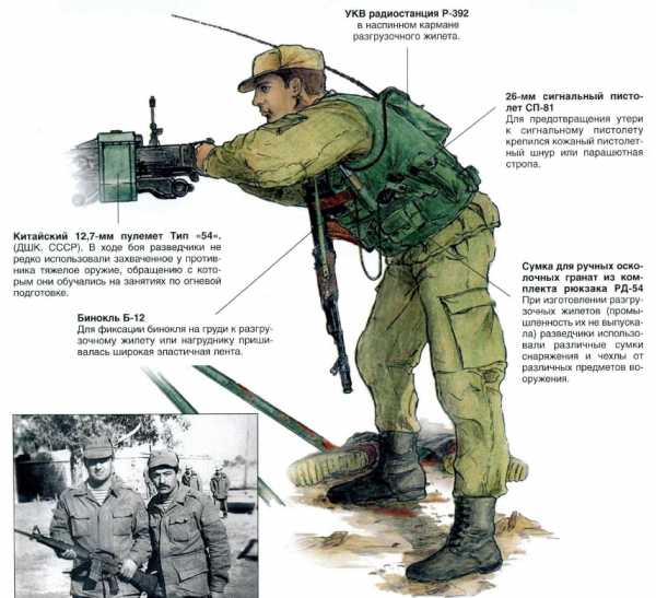 7.62- мм патроны (китайские, египетские и пр.). Разведчикам импонировала и возможность пополнения боекомплекта своего автомата трофейными патронами с «разрывными» пулями (бронебойно-зажигательными), так как аналогичными отечественными патронами советские войска в Афганистане из- за соображений «гуманности»(?!) практически не снабжались. Серьезным аргументом в пользу выбора разведчиками