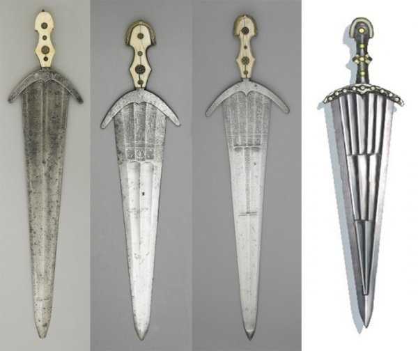 Две чинкуэды, малая кинжального типа, из северной Италии, около 1500 года. И большая мечного типа 16 века.