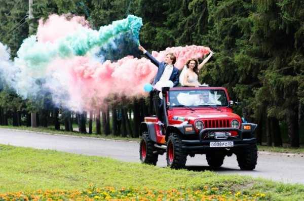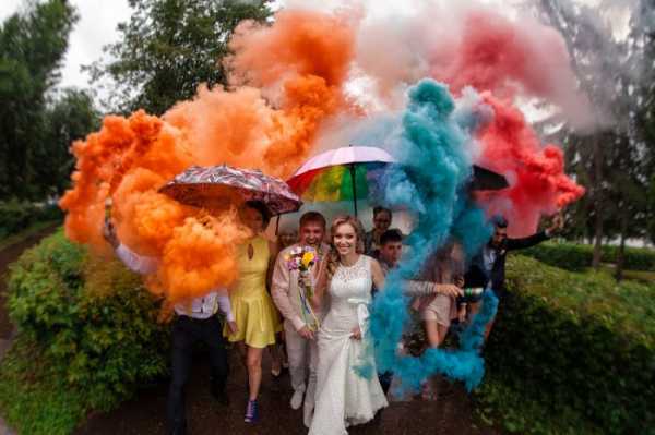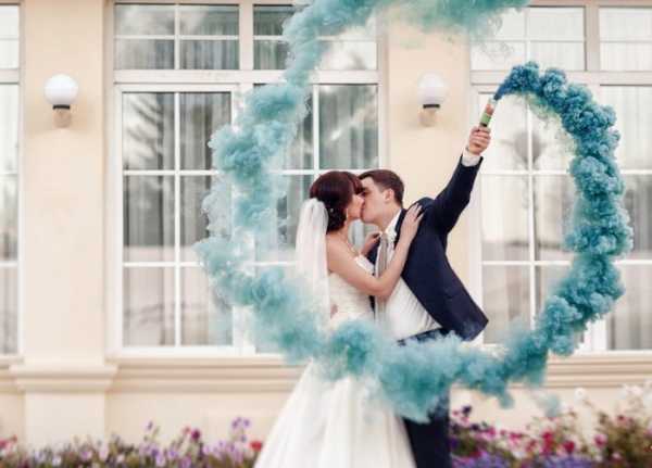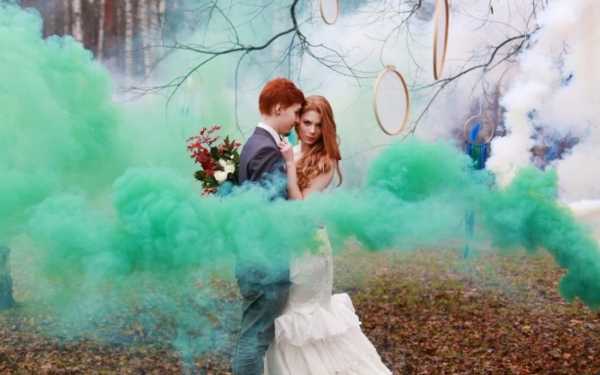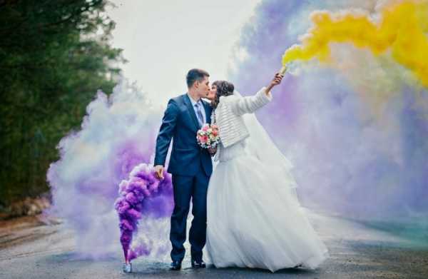 Цветной дым на свадебном фото