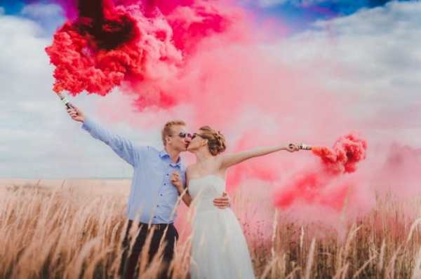 Фотосессия молодоженов – важная часть торжественного мероприятия. Пары очень ответственно подходят к этому вопросу, приобретая разнообразные атрибуты, с помощью которых можно получить завораживающие кадры. Дымовые шашки стали использоваться не так давно, но уже приобрели популярность среди молодоженов.