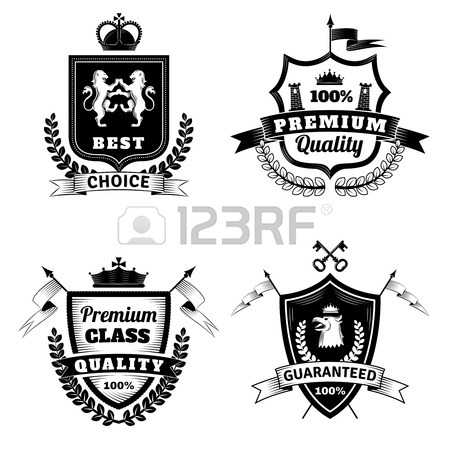 #45807120 — Heraldic best choice black white emblems set with coat of arms..Вектор