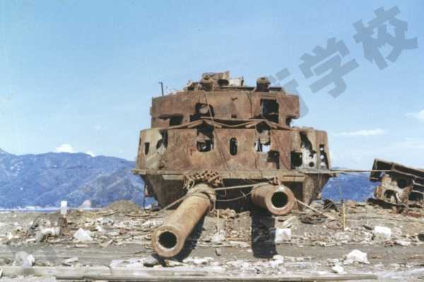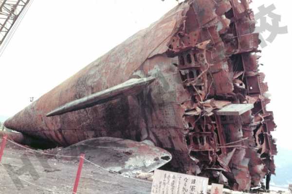 Линкор «Нагато» в Йкосуке в 1946 году незадолго до отправки на атолл Бикини (Маршалловы острова). Несколько дней, пока не подошли буксиры, остатки некогда величественного флота дрейфовали. С черепашьей скоростью в 1 узел, буксир тащил тушу «Нагато» в Эниветок, несомненно, если бы не помощь еще одного более крупного буксира, линкор рисковал попасть в шторм и затонуть, в следствие неработающих насосов – на борту не было электричества — крен достиг 7 градусов. На подступах к Эниветоку, «Нагато» все же попал в волну тайфуна, но остался невредимым и 4 апреля бросил якорь, на 18-й день перехода.