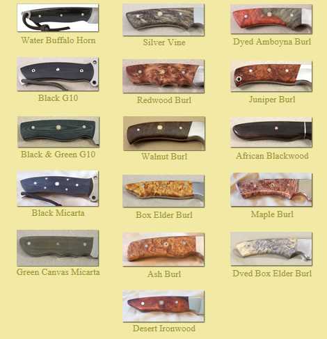 Инфографика: Материалы, используемые компанией O’Hare Knives для изготовления рукояток кастомных ножей.