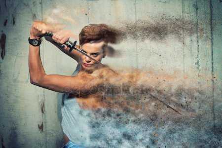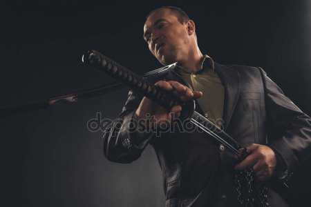 Меч ниндзя (гатана) был коротким и изогнутым, его металлическая рукоять была опутана полосками кожи черного цвета. На нем не было никаких узоров, орнаментов и уж тем более драгоценных украшений, чтобы меч не привлекал к себе внимания, и его нельзя было идентифицировать (по понятным причинам дактилоскопия в средневековой Японии отсутствовала).