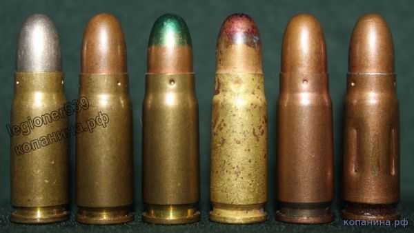 На патронах с трассирующей пулей кончик пули окрашен в зеленый цвет.