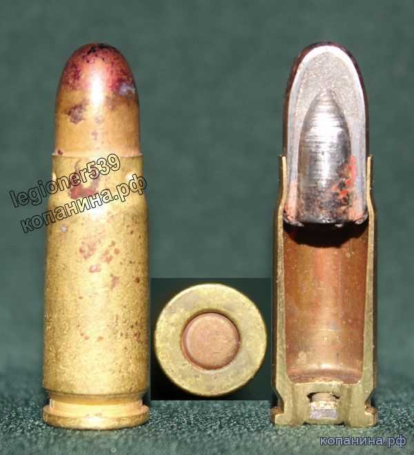 И что мы видим? Нормальный патрон 7,62*25, патрон на его же основе, рассверлен под «центробой», пуля самодельная, патрон «Нагана».
