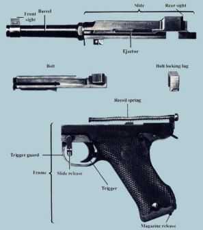 Затворная коробка имеет прямоугольную форму. С её тыльной стороны находится плечевой упор с резиновой амортизирующей накладкой, а слева (на уровне щеки стрелка) привинчена деревянная накладка. Снизу имеется пистолетная рукоятка со спусковым механизмом. Рукоятка затвора находится с правой стороны затворной коробки, рычажок предохранителя – с левой.