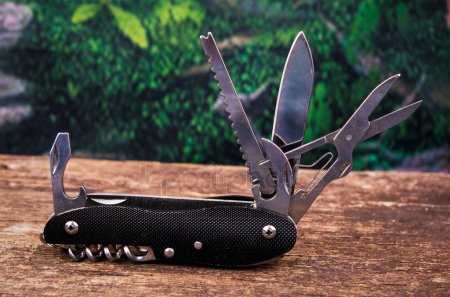Швейцарский армейский нож — это многофункциональный складной нож, который оснащен клинком и несколькими дополнительными инструментами, такими как отвертки, открывалки, штопор и так далее. В нерабочем положении инструменты находятся внутри рукояти ножа и освобождаются вращением вокруг внутреннего шарнира.