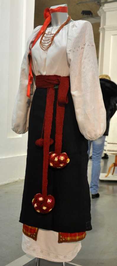 Колорит нарядов многих районов Украины был светлый, белый, обогащенный яркими цветами шерстяных плахт, запасок, поясов, венков, красного ожерелья и лент.