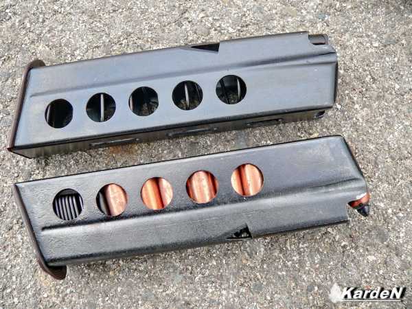 — заостренные грани губок магазина плюс невозможность ручного снаряжения более десяти патронов превращают снаряжение магазина в малоприятное занятие.