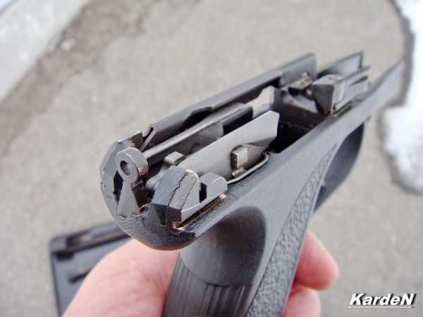 — своеобразный спуск – тугой и непредсказуемый. Обрабатывать спуск, как на курковом пистолете, на нем невозможно.