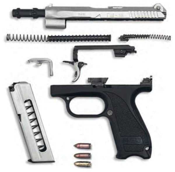 Всё это, мягко говоря, не способствовало популярности конструкции КБП. Сегодня достаточно уверенно сказать, что именно этот пистолет стал «отцом» будущего ГШ-18. В частности, на нём была использована схема, сочетающая короткий ход и запирание поворотом ствола. Рамка пистолета была изготовлена из пластика — если быть точным, из стеклонаполненного полиамида.