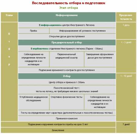 Последовательность отбора и подготовки во Французский Иностранный Легион
