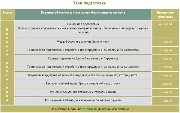 военной подготовки, длящейся около 4-х месяцев. После этого кандидатов распределяют в полки в зависимости от их способностей и потребностей Легиона.