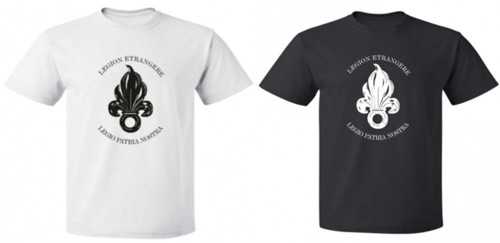 Что же касается фирменных футболок, которые можно встретить в продаже с эмблемой Французского иностранного легиона (Légion Etrangère) и их знаменитым девизом: «Легион — наше отечество!» (Legio Patria Nostra), то они однотонные – оливковые, черные и белые.