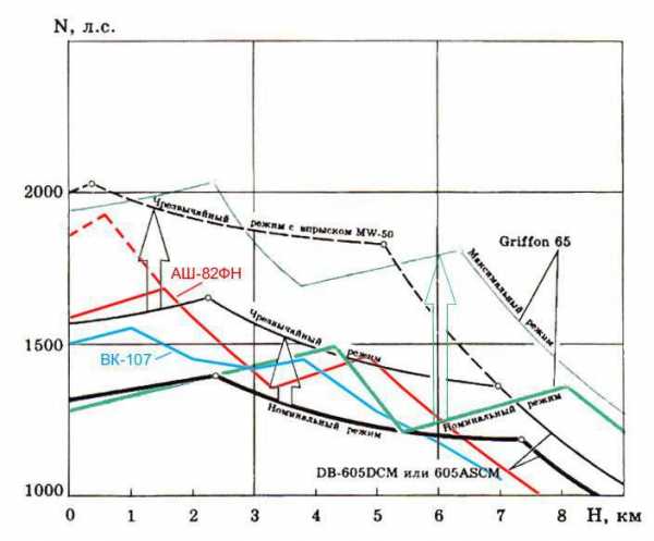 Большинство вариантов «Мустангов» и «Спитфайров» рассчитывалось на большую высоту боевого применения, характерную для действий авиации на Западе. Поэтому их моторы имели достаточную высотность. Немецкие моторостроители вынуждены были решать сложную техническую задачу. При сравнительно большой расчетной высоте мотора, необходимой для борьбы в воздухе на Западе, важно было обеспечить необходимую мощность на малых и средних высотах, требуемую для ведения боевых действий на Востоке. Как известно, простое увеличение высотности обычно ведет к возрастающим потерям мощности на малых высотах. Поэтому конструкторы проявили много изобретательности и применили ряд неординарных технических решений, По своей высотности мотор DB-605 занимал как бы промежуточное положение между английскими и советскими моторами. Для повышения мощности на высотах ниже расчетной применялся впрыск водоспиртовой смеси (система MW-50), что давало возможность, несмотря на сравнительно низкое октановое число топлива, заметно увеличивать наддув, а, следовательно, и мощность без возникновения детонации. Получался своеобразный максимальный режим, который, как и чрезвычайный, обычно мог использоваться до трех минут.