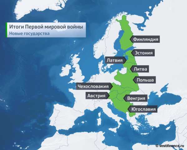 5)Поражения и революции разрушили четыре империи Российскую, Германскую, Австро-Венгерскую и Османскую. В результате появились новые независимые государства: Финляндия, Литва, Эстония, Чехословакия, Польша, Латвия, Югославия, Грузия, Армения, Азербайджан, а также Австрия и Венгрия. Их самоопределение благоприятствовало продвижению народов к свободе и демократии.