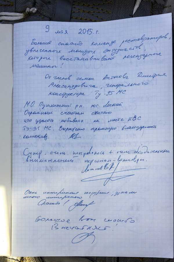 20. С первого дня мы начали вести журнал отзывов. Интересно, что среди первых посетителей оказались члены семьи Дмитрия Александровича Антонова — главного конструктора Ту-95МС.