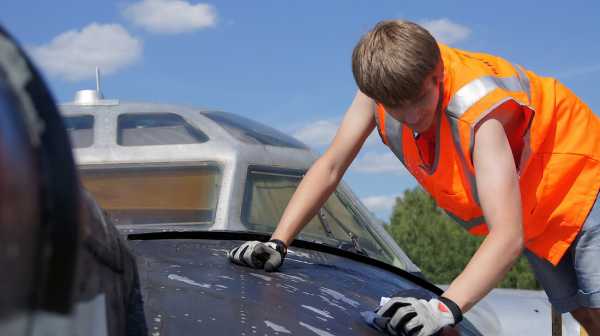 47. Когда залезали на самолёт, обнаружили, что прошлогодняя антибликовая полоса начала облезать. Придётся ею заниматься.