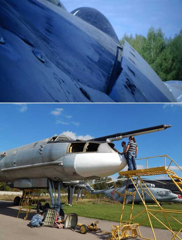 Уже прошло два года, как я перестал систематически ходить на заброшенные объекты («совершать залазы», на специальном сленге), а все свободные субботы стал проводить в Центральном музее ВВС в подмосковном Монино.Первый раз после очень долгого перерыва я приехал в Монино в 2012 году, сделав в ЖЖ большой обзор экспонатов. В 2013 году посетил организованный волонтёрами День открытых дверей, написав посты о Ту-114 и Як-40, В-12 и Ту-144. В 2014 году я вступил в волонтёрское движение и сам начал участвовать в ДОДах. Наконец, в начале 2015 года я решился взять под свою «опёку» один из экспонатов — ракетоносец Ту-95МС. Самолёт, мягко говоря, не самый маленький, но задача привести его в порядок упрощалась потому, что до 2012 года борт служил учебным пособием и сохранился вполне прилично. К тому же, работы в основном концентрировались вокруг весьма компактной пилотской кабины.