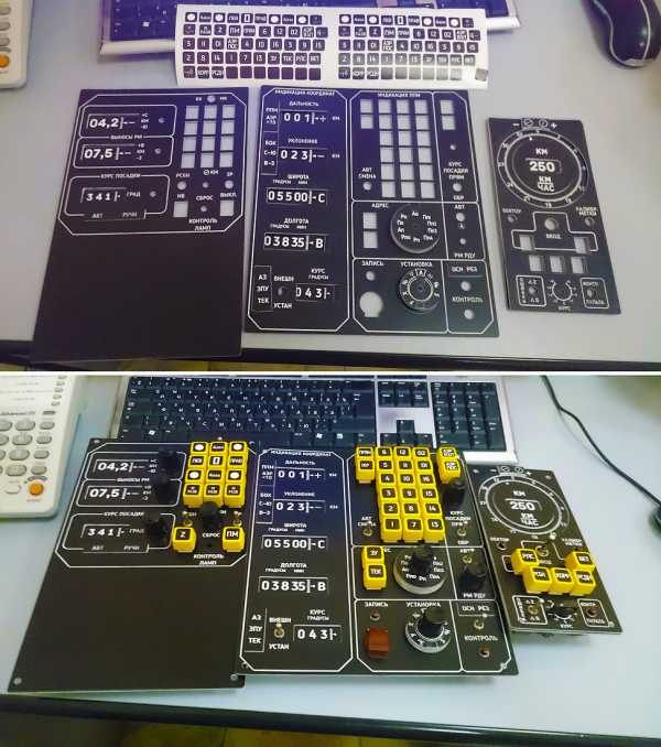 44. Три из пропавших панелей оказались специфическими для опытных самолётов КБ Туполева, они ставились на многие самолёты первых серий. Так как найти замену в обозримой перспективе не представлялось возможным, я решил заменить их макетами. Сделал в CorelDRAW модели, заказал в типографии распечатку на пластике, установил кнопки и тумблера. За помощь в изготовлении макетов спасибо Александру Власову и ООО «Стикер Ру».