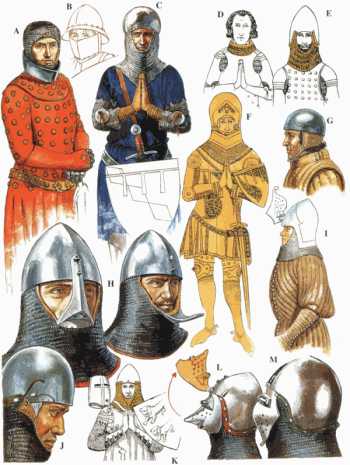 В середине XIII века появились подшлемники, отделенные от кольчуги, хотя до 1300 года преобладали подшлемники, объединенные с кольчугой. Изредка встречались облегченные кольчуги с рукавами до локтя.