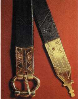 (A) Первое свидетельство о пластинчатом горжете относится к концу XIII в. Это надгробье дона Альверо де Кабреры (+ ок. 1314 г.). Горжет плотно охватывает шею и подбородок, вместе с кольчужным подшлемником образуя основание для большого шлема.