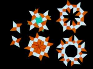 Дети очень изобретательны: из четырехконечных сюрикенов они придумали собирать более сложное оружие – связку звезд. Она выглядит внушительно, имеет большие размеры за счет использования от 4 до 8 стандартных сюрикенов. Такие модели чаще всего используют самые заядлые любители оригами, которые поняли суть этого искусства, научились модернизировать базовые модели под свои нужды.