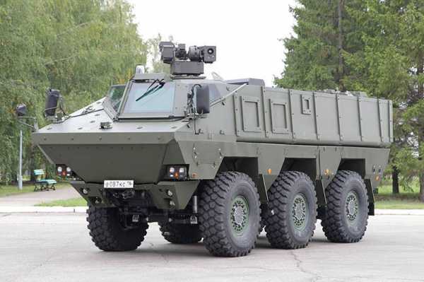 Как можно заметить бронеавтомобиль представлен в вариантах с различным вооружением. На заднем плане боевой модуль дистанционного управления «Арбалет-ДМ»: