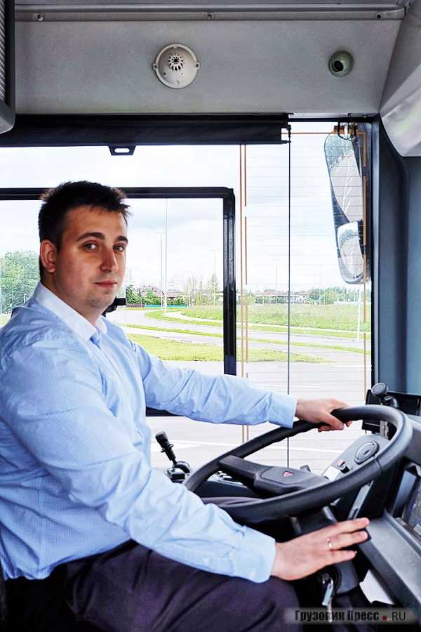 Органы управления в кабине водителя выполнены и расположены просто, что не требует дополнительных усилий от водителя во время езды. Однако в отличие от большинства автобусов и троллейбусов, эксплуатируемых в России, самые востребованные кнопки открывания служебных дверей установлены в противоположенной стороне. Такое решение вызывает неудобство и требует привыкания от водителя, севшего за руль электробуса впервые.