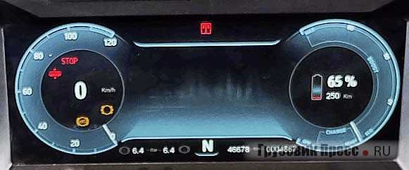 Выехав из парка на ЖК-экране, заменившему комбинацию приборов, заряд батарей показывал значение 80%. Невольно взгляд постоянно бросаешь именно на этот индикатор, медленно отсчитывающий таящие силы.