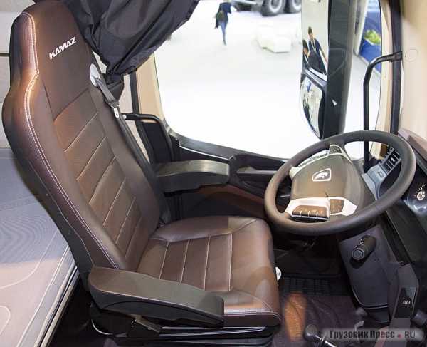 Изменился и интерьер. Для грузовиков Mercedes-Benz, изготовляемых в Набережных Челнах, завод кабин СП «Даймлер КАМАЗ РУС» будет производить полнокомплектные кабины, а вот для КАМАЗа – только стальные каркасы. Остальное делайте сами! Кабина отвечает последним требованиям по комфорту и представляет собой малогабаритное купе: расстояние в кабине от пола до потолка – 1980 мм, а внутренняя ширина – 2270 мм. Органы управления и панель приборов спроектированы с доступом на расстоянии вытянутой руки. Сиденья допускают широкий диапазон регулировок. Два спальных места пока не предусматриваются в качестве базовых, но бортовая информационная система с 10-дюймовым сенсорным экраном уже являются неотъемлемым атрибутом.