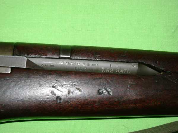 Фото патронников винтовок М1. На первом фото — стандартная винтовка под патрон 30-06, на втором — модифицированая под 7,62х51. Хорошо видны пластиковая вставка и вкладыш в патронник: