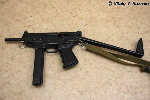Стрельба с закрытого затвора значительно повышает кучность и меткость. Откидной приклад повышает устойчивость пистолета-пулемета.