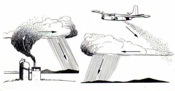 Последнее всегда стремилось к тому, чтобы меньше зависеть от климата и погоды, овладеть стихиями и направить их силы себе на пользу. Язычники для этого прибегали к ритуалам и помощи колдунов. Эти обряды, как известно, дожили до наших дней — например, в Африке. Но верования — это одно, а наука — другое. Наблюдательные люди заметили, что после сильных лесных пожаров часто выпадает дождь. Осадки сопутствовали также и артиллерийским сражениям. Позже было экспериментально доказано, что водяной пар, содержащийся в воздухе, превращается в облачные капли благодаря наличию центров или ядер конденсации.